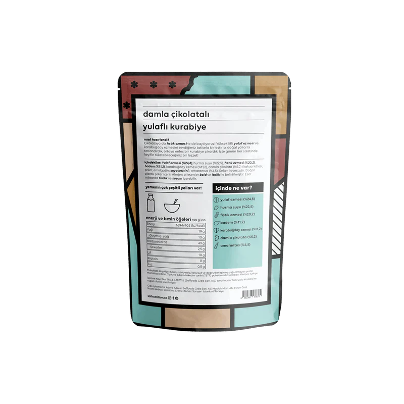 Çikolataya da fıstık ezmesine de bayılıyoruz. Fakat saf’ın farklılığını ortaya çıkaran amarant, karabuğday ezmesi gibi yulaf ezmesi ve karabuğday ezmesinin yüksek lifli karışımını sevdiğimiz tatlarla birleştirip, doğal yollarla tatlandırınca enfes bir kurabiye ortaya çıkardık! Günün her saatinde keyifle tüketebileceğiniz bir lezzet.